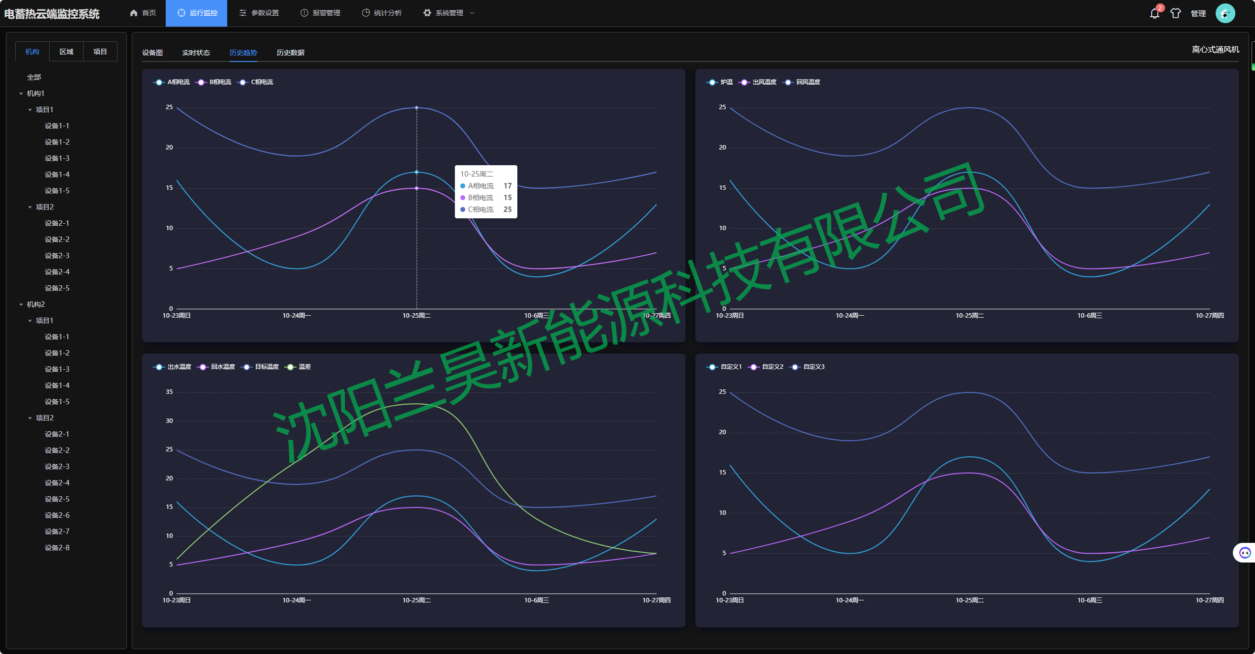 實時顯示蓄能供熱裝置的運行狀態參數。
